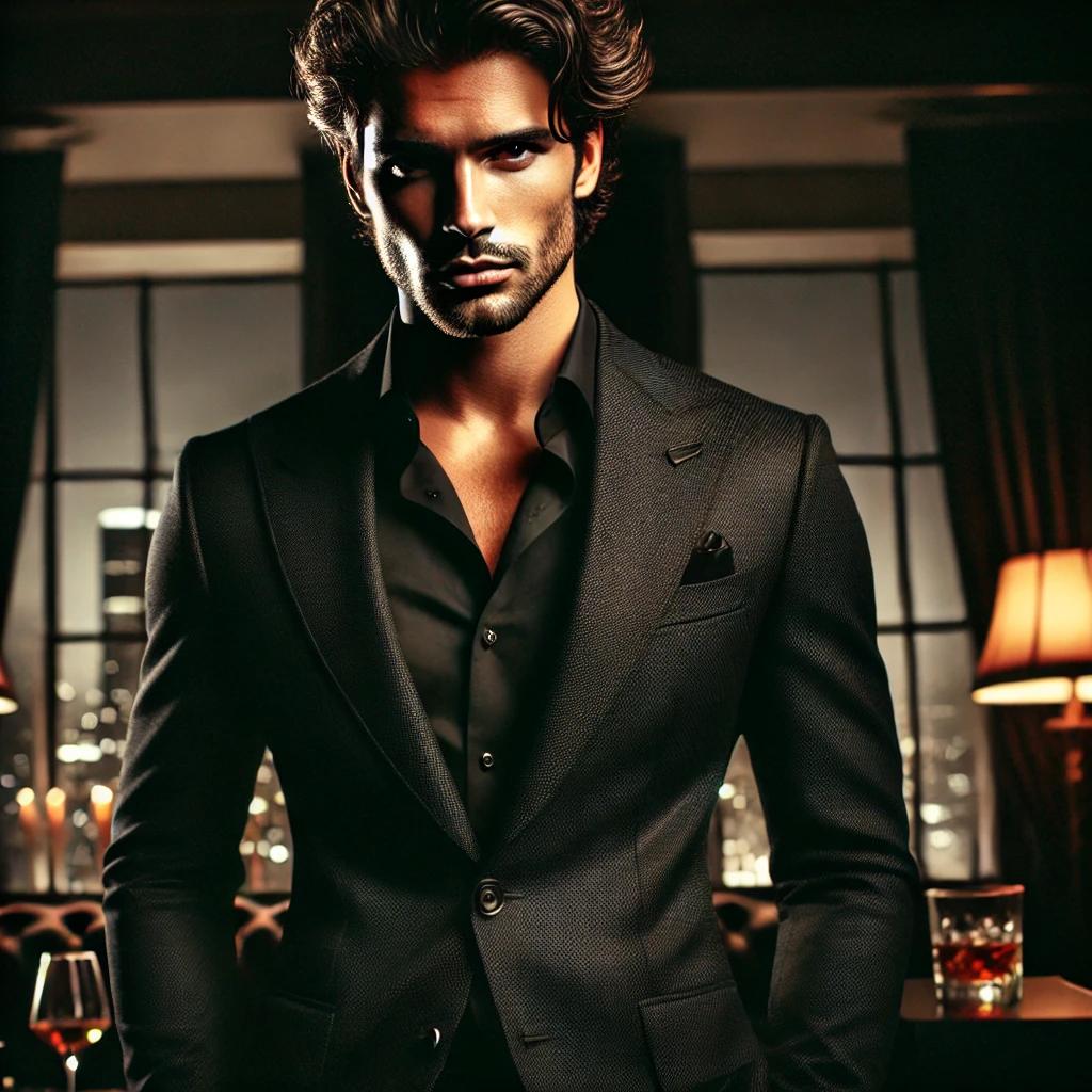 Physical Appearance: Tall, muscular build, sharp jawline, piercing dark eyes, tousled black hair, and a presence that demands attention.